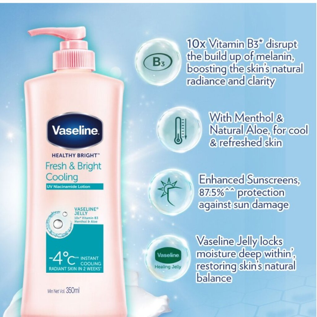Filled with skin-loving properties, Vaseline Fresh & Bright Cooling 500ml is more than just a moisturizer. It’s specially formulated to cater to various skin types, offering benefits that go beyond hydration. Here’s a quick look at why Vaseline Fresh stands out: